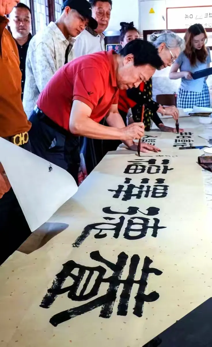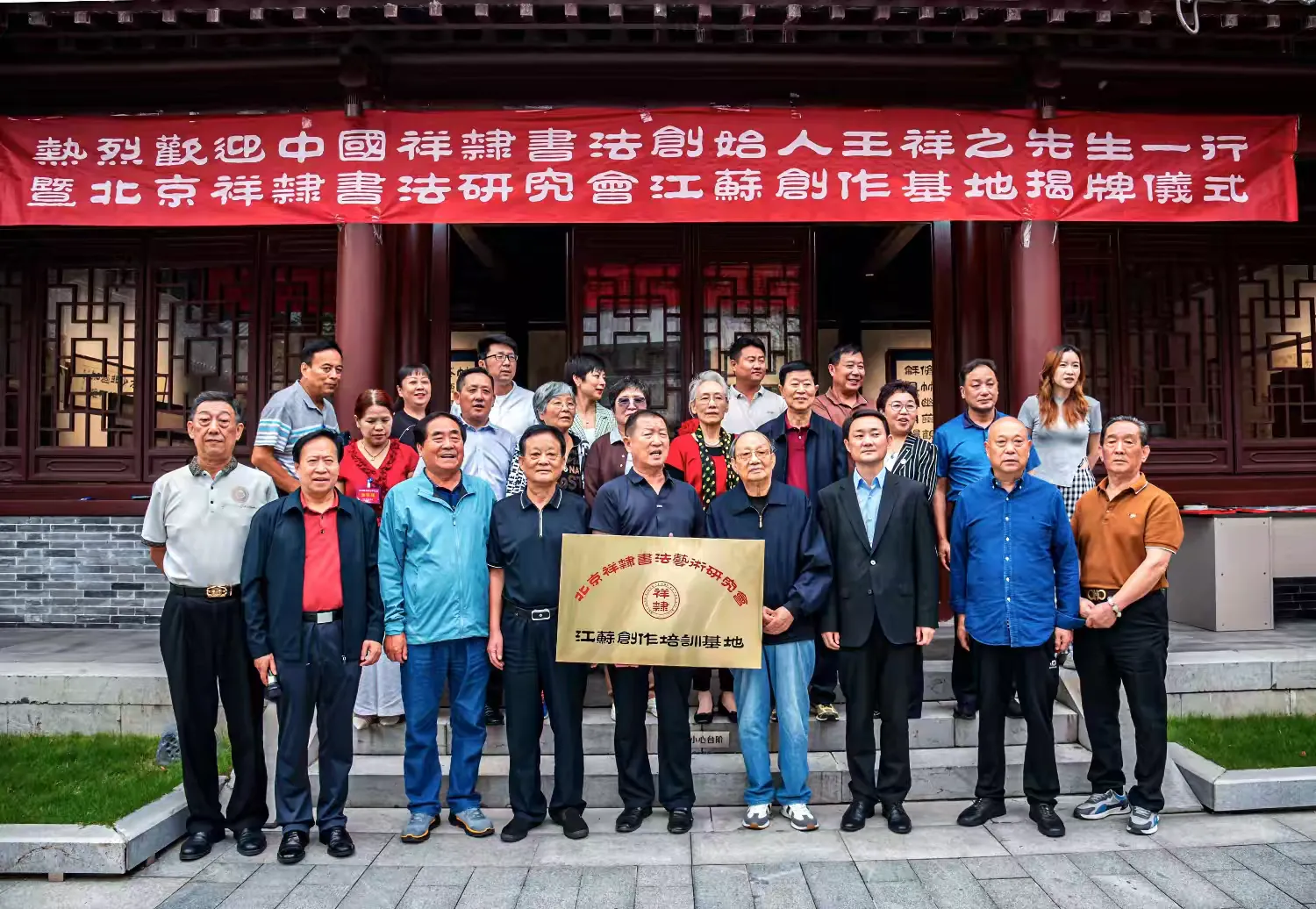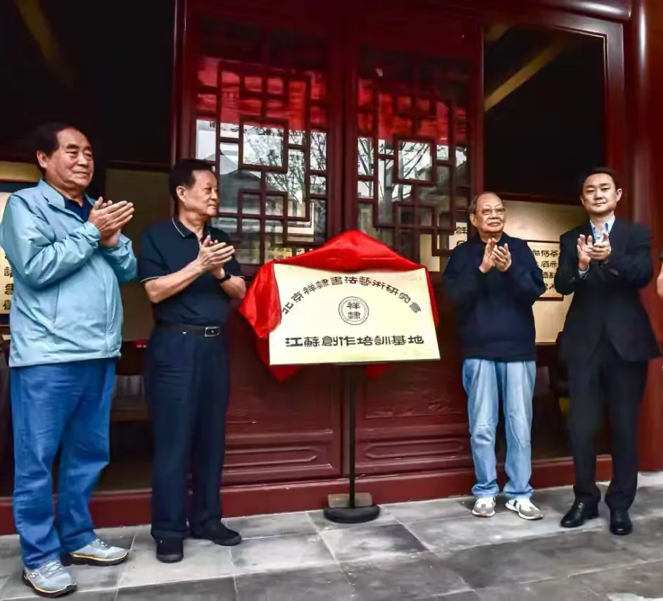 在当地有关领导和嘉宾朋友的见证下,在徐州市文庙,为“祥隶书法艺术研究会江苏创作培训基地”揭牌。祥隶书法艺术研究会张荣喜会长对基地建立和发展提出要求,希望积极拓展平台环境,培养更多祥隶书法人才,努力为当地文化建设做贡献。徐州市政协副主席张爱军表示,感谢王祥之先生和祥隶研究会对徐州文化工作的关心,积极支持基地建设和基地主任徐昌龄的工作,让“祥隶”书法,在江苏落地生根,开出更多靓丽花朵。