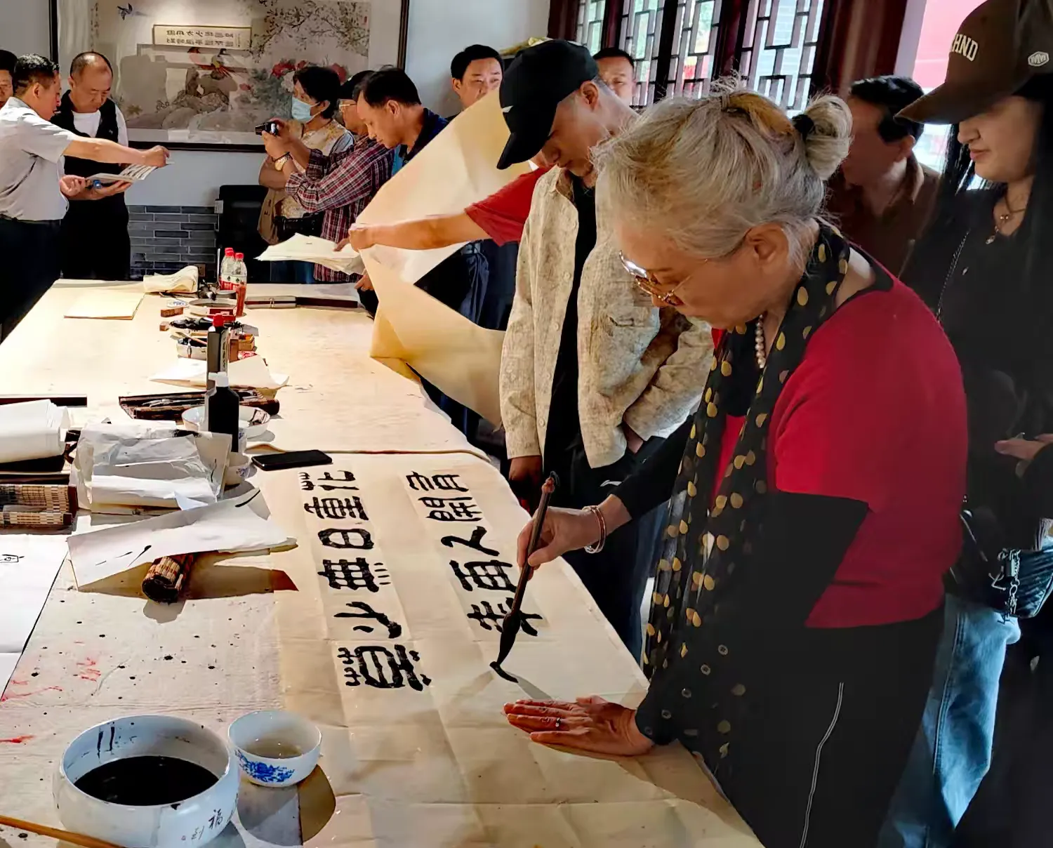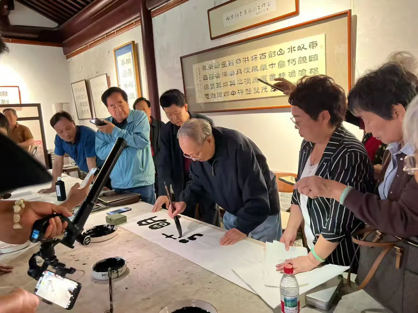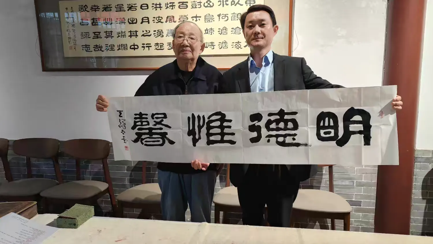 揭牌仪式后,进行了座谈和笔会交流。王祥之先生首先开笔,并向徐州市文庙发展中心主任韩松赠送作品“明德惟馨”。祥隶研究会的几位书法家,挥毫泼墨,笔走龙蛇,既展示“祥隶”书体古朴厚重、雄强大气的独特魅力,又透露出对书法艺术的执着与热爱,现场气氛热烈、情形感人。