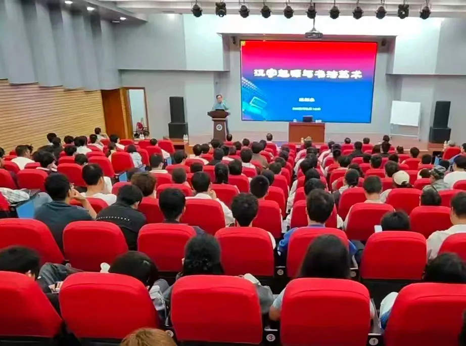 王祥之先生一行, 应邀到中国矿业大学力学与土木工程学院讲学,八十多岁高龄的王先生,以《汉字起源与书法艺术》为题,用一个半小时,采取讲解示范、互动交流等形式,深入浅出、通俗易懂、生动形象地讲解了汉字起源演变和书法常识。全场座无虚席、听课专注、秩序井然,受到近200名师生的高度赞扬。讲座结束后,王祥之先生向学院赠送了自己的研究专著《图解汉字起源》。力学与土木工程学院纪承书记,真诚感谢对学院的关心支持,盛赞王先生授课精彩,不愧是德艺双馨的书法大家和文化使者。