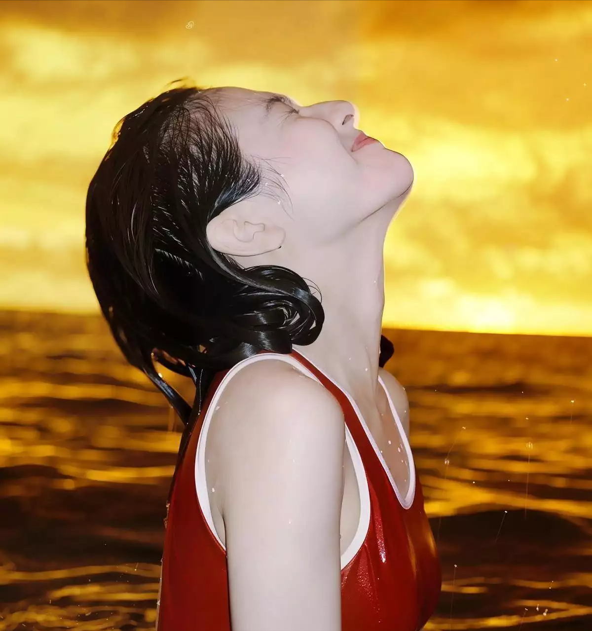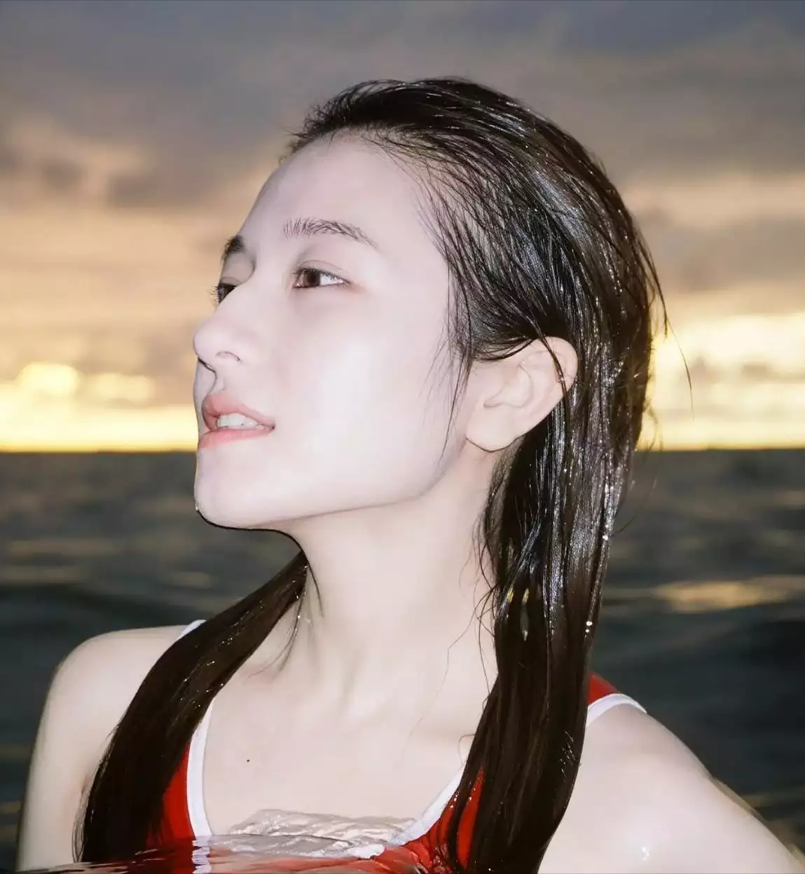 李兰迪海边写真新造型曝光 红色泳装勾勒绝美身材