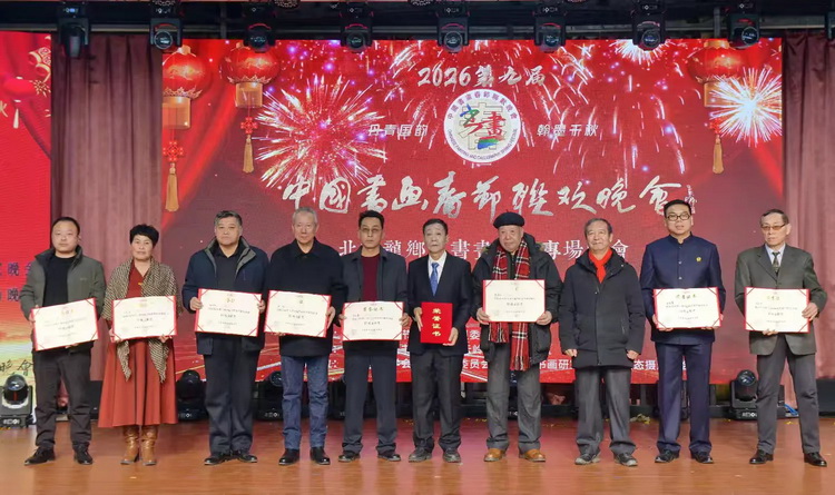 [摘要] 第九届中国书画春节联欢晚会暨北京龙乡人书画春晚专场晚会在金水湖风景区举行(新闻稿)(第九届中国书画春节联欢晚会“北京龙乡人书画春晚专场晚会”合影)(主持人:杜宏伟、丁然)第九届中国书画春节联欢晚会“北京龙乡人书画春晚专场晚会”在京隆重举行(新闻稿) 书画春晚快讯:2026年1月25日,第九届中国书画春节联欢